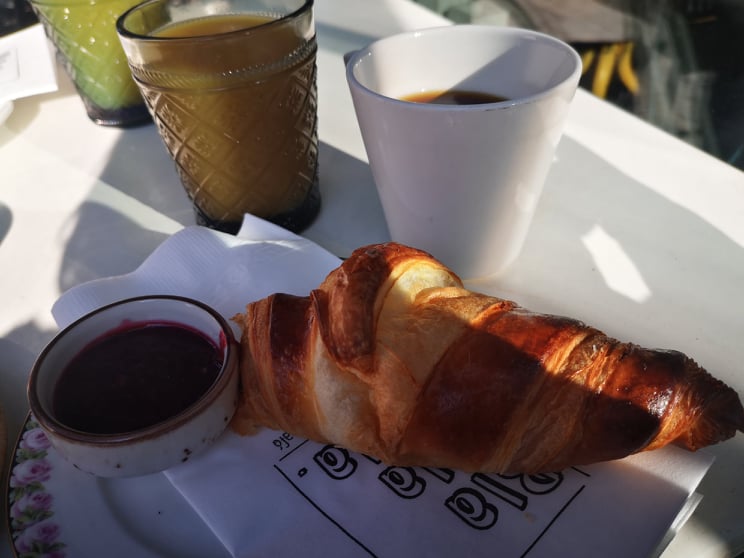 Bloggaajan elämää! Ei kukaan huomaa, että croissanttia on jo puraistu, kun kuvanotto unohtui.