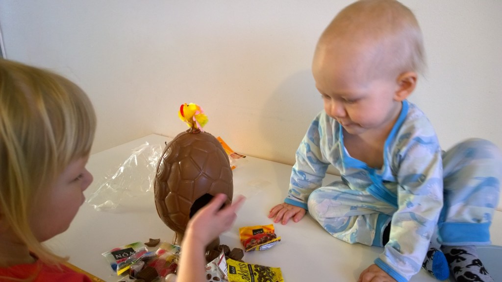 Pieni pääsiäispysähdys on tullut meillä tarpeeseen. Tosin kuopuksella menee edelleen hieman sekaisin nämä pääsiäiset, halloweenit, joulut, öskudagurit (islantilainen naamiaispäivä helmikuussa) ja synttärit, mitä näitä nyt on. Ja ei ihme, kun viime viikonloppuna aloin kaivaa jotain noitamaista päällepantavaa ja manageerasin lapsia tekemään virpomavitsoja.